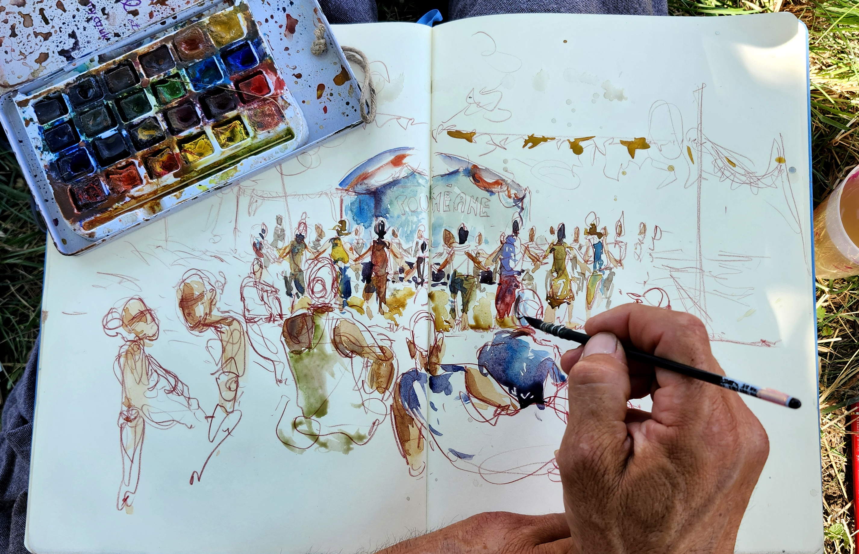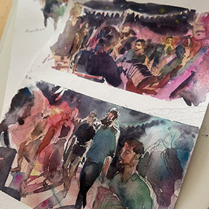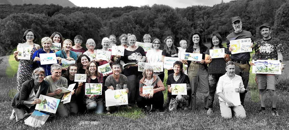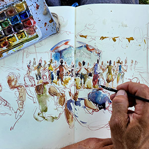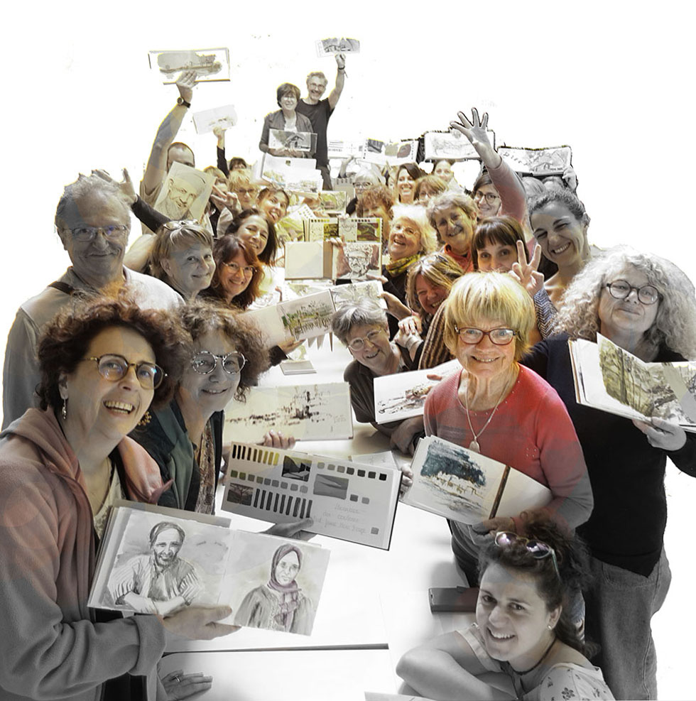 Jérémie Bonamant Teboul organise chaque année plusieurs stages de 5 jours d’ateliers où des dizaines de croqueur·euse·s se rejoignent pour partager le plaisir de dessiner sous les conseils avisés de plusieurs carnettistes professionnels et expérimentés.