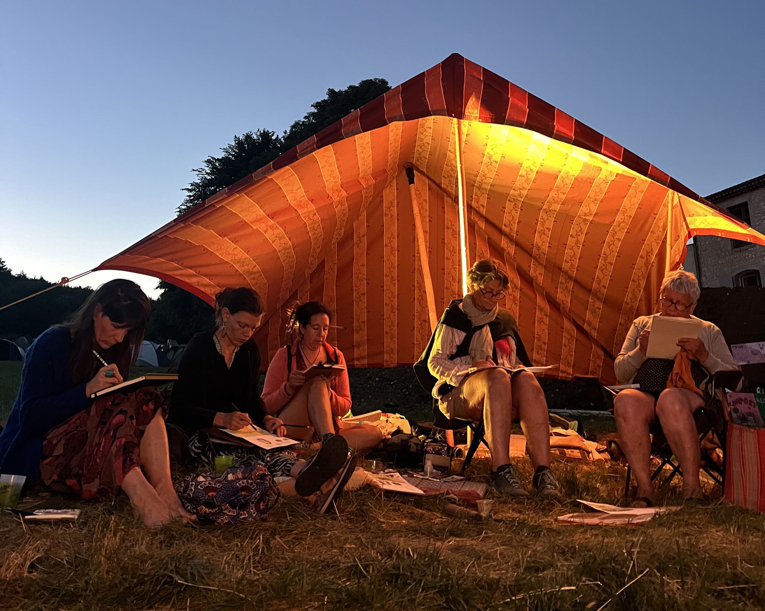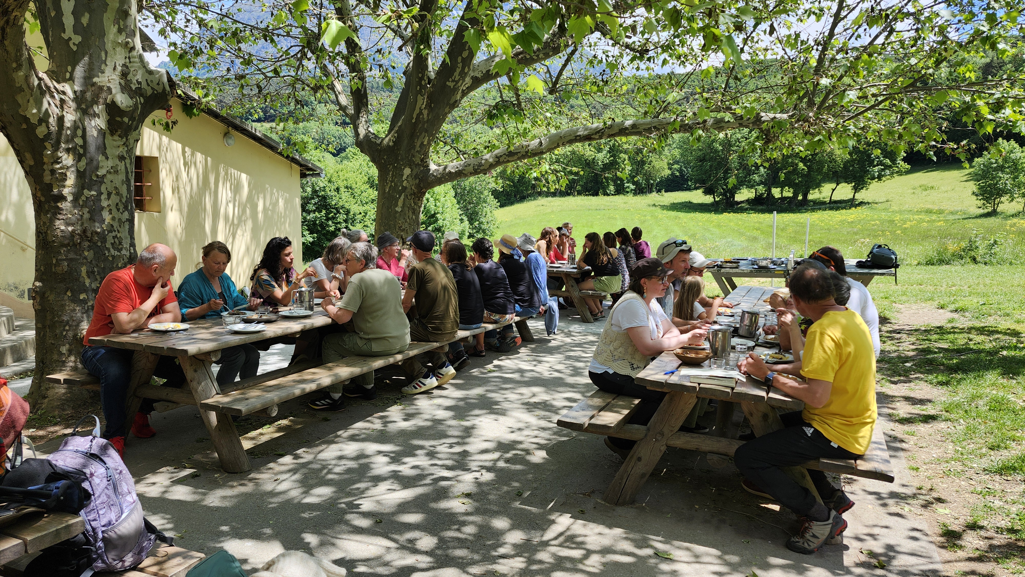 Cette ambiance conviviale fait partie du charme d‘un tel stage, et le lieu est bien pensé pour que ce soit fluide. Et entre le petit-déjeuner échelonné, les ateliers en plein-air, les pique-niques en petits groupes... on est rarement tous ensemble.