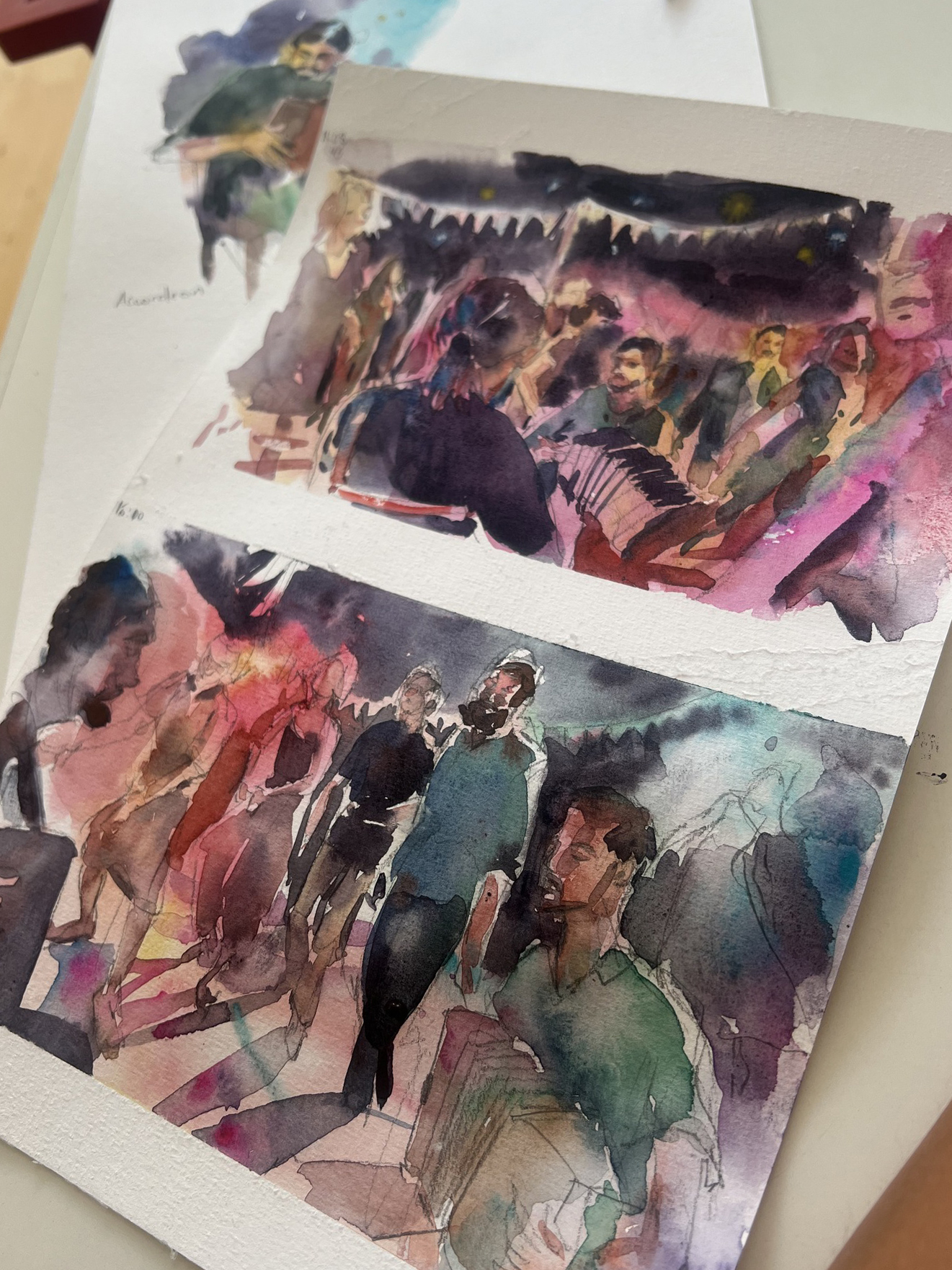 En complément de l’atelier de Patrick, je proposerai des ateliers plus centrés sur les techniques traditionnelles du carnet de voyage, comme un temps d’ancrage et de structuration, mais avec la touche d'expressivité qui caractérise ma propre pratique.