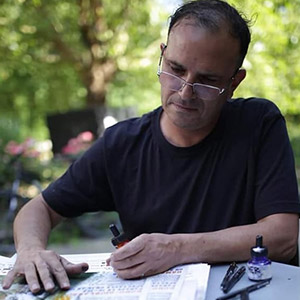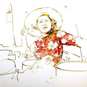 Patrick Singh est un artiste visuel, peintre, dessinateur, auteur de livres d’artistes et de carnets de voyage. Son travail parle des sociétés qu’il traverse et puise sa force dans leur humanité fragile.